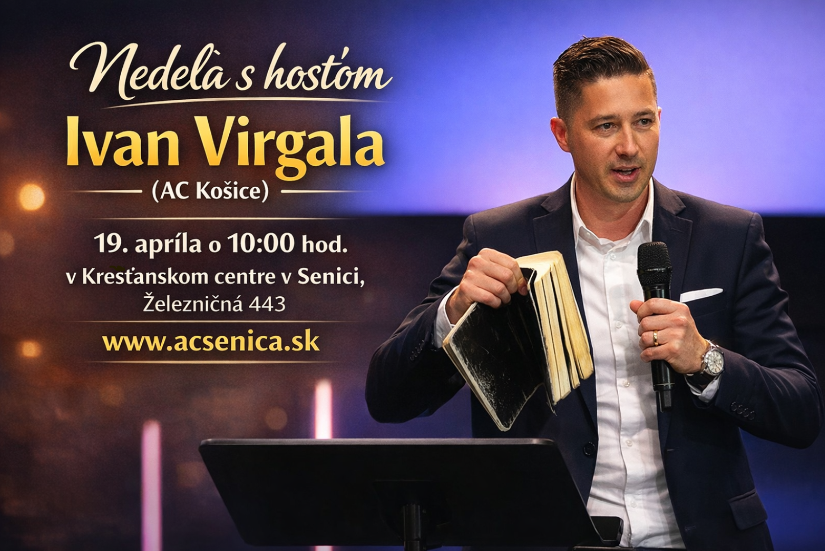V nedeľu 19.apríla o 10:00 hod. privítame medzi nami Ivana Virgalu z AC Košice. Nechajte sa vtiahnuť Božieho slova, objavovať a premieňať svoje srdce.