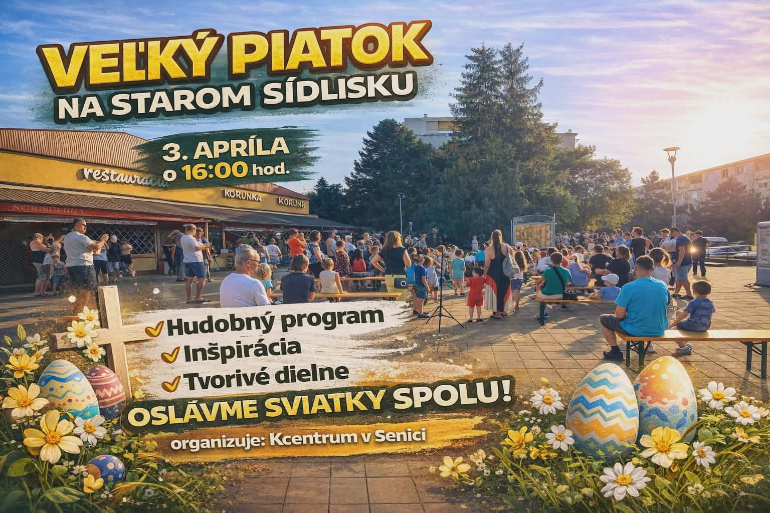Veľký piatok budeme na starom sídlisku, na našom obľúbenom mieste. Má to svoje grády. V prípade nepriaznivého počasia bude Veľký piatok v rovnakom čase v Kresťanskom centre v Senici.